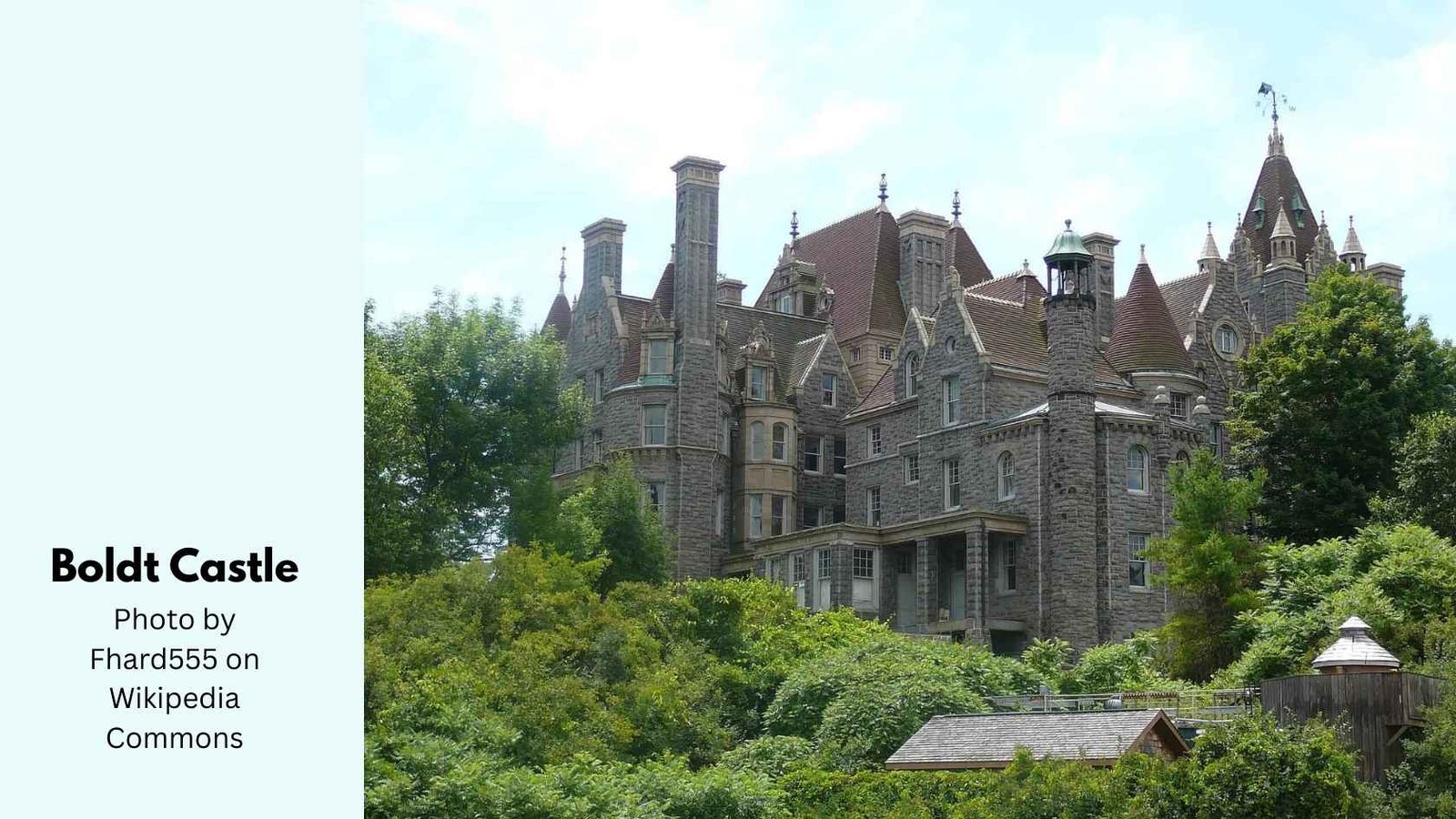 Fhard555. Boldt Castle, Heart Island, Thousand Islands, New York. July 12, 2012. Photo. Wikimedia Commons. https://commons.wikimedia.org/wiki/File:Boldt_Castle,_Heart_Island,_Thousand_Islands,_New_York.jpg#Licensing.